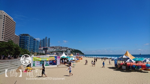 屬於海港城市的釜山周邊有許多的海水浴場,像是前一天去的松島海水浴場或是可以看欣賞夜景的廣安里海水浴場等,其中最著名的果然非海雲台海水浴場莫屬了!從釜山站坐到海雲台站大約需40分鐘的時間,而且需要從橘線轉乘至綠線,票價會多出KRW200。